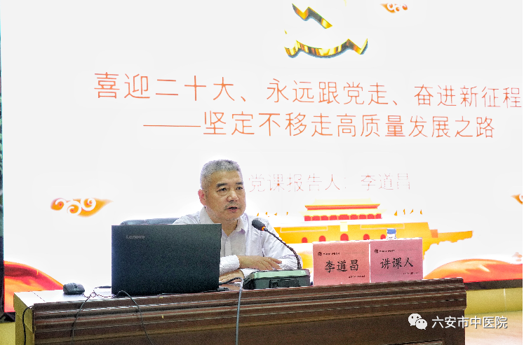 会议最后,李道昌书记以《喜迎二十大、永远跟党走、奋进新征程”——坚定不移走高质量发展之路》为主题做了党课报告,回顾了党的征程,强调全院各级党组织和党员干部要深入学习贯彻习近平总书记重要讲话精神,把握新征程提出的新的更高要求,坚定历史自信,保持历史主动,弘扬伟大建党精神。